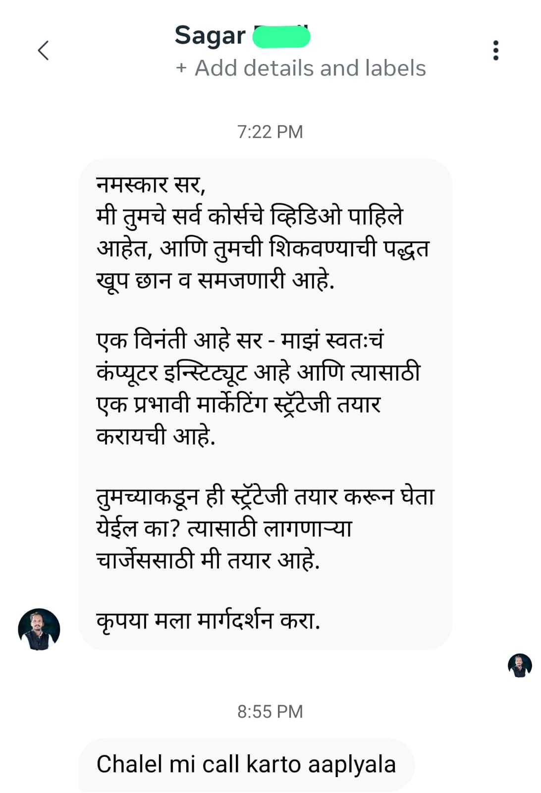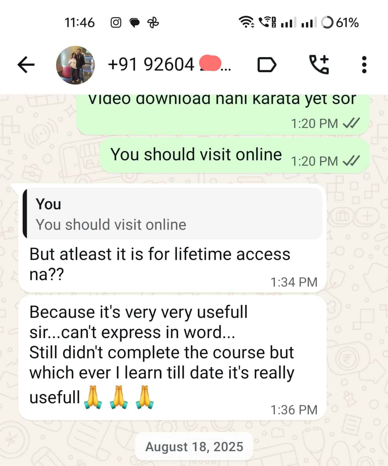 It’s a complete course in affordable price. फक्त real-world skills जे तुम्हाला कामी येतील business वाढवण्यासाठी, clients मिळवण्यासाठी, किंवा freelancing सुरू करण्यासाठी.